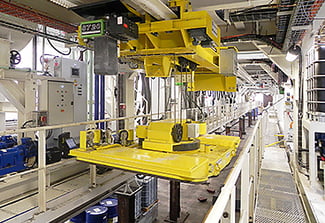 Die Hebezeuge der Seilzugserie SH 5020-40 mit 1/1 Einscherung und einer Seiltrommellänge 2 wurden im Werk in Künzelsau gefertigt. Der Kunde forderte für diese Anwendung eine überdurchschnittlich hohe Hubgeschwindigkeit, die durch eine Hubwerkselektrik mit Frequenzumrichter und Motordrehgeber für eine Closed-Loop-Regelung realisiert wurde. Die Closed-Loop-Regelung kombiniert mit einer Software ermöglicht es, die Istgeschwindigkeit des Hubwerks zu der Sollgeschwindigkeit abzugleichen und gegebenenfalls nachzujustieren. So können Hubgeschwindigkeiten von 8 bis 12 Meter pro Minute erzielt werden. Der Frequenzumrichter ermöglicht zudem einen reibungslosen Ablauf der Beschleunigungs- und Verzögerungsbewegungen des Hebevorgangs.