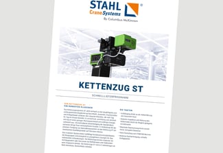 Das Ketten­zugprogramm ST zählt welt­weit zu den markantesten und umfang­reichsten Angeboten. Er ist kraftvoll, zuverlässig und anspruchs­los, was Wartung und Energie­verbrauch angeht. Das Bau­kasten­system ermöglicht zahlreiche Kombinationen der Bau­gruppen im Einsatz für individuelle Lösungen.