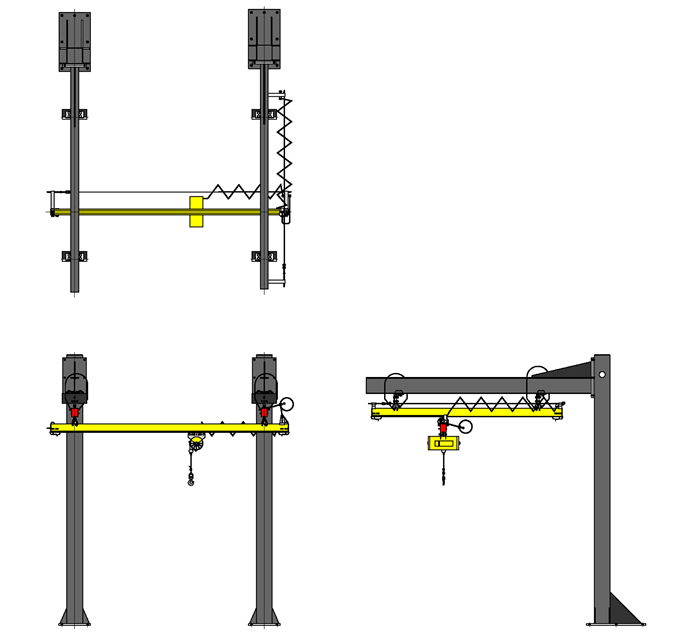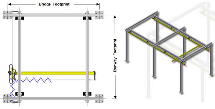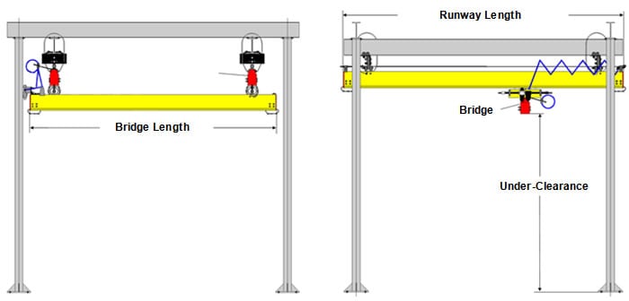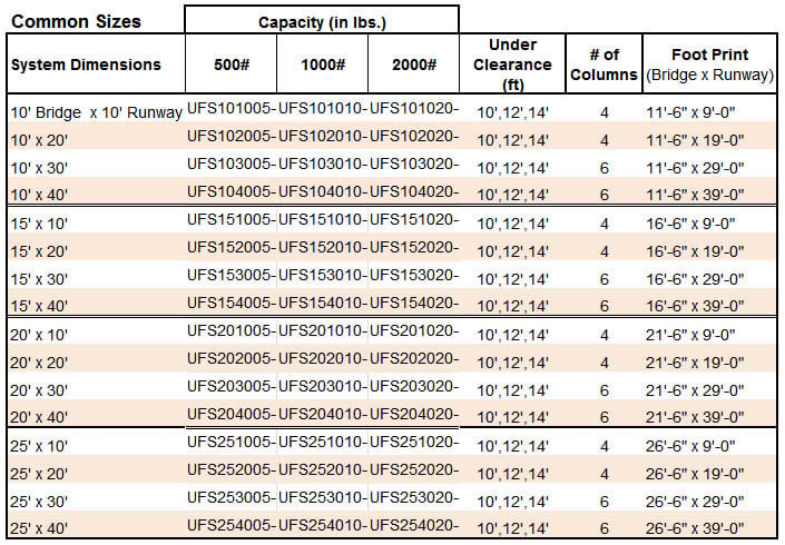 - System capacity is for the sum of non-motorized, non-cantilevered live loads and dead loads suspended from bridge. For applications with an air tractor or cantilevered load, please consult the factory.