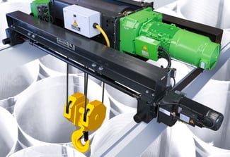 A frequency inverter is always advantageous when productivity is to be supplemented by an extended speed range. With the Advanced Ultra-Lift feature, when the hoist is not at full capacity, the speed can be safely increased to improve productivity and efficiency. Reducing the lifting speed, in turn, allows the load to be set down gently and positioned precisely. By means of a frequency converter, the SMC 4 Multicontroller provides a range of important safety capabilities, including functional safe shutdown in case of overload, speed monitoring, improved ALC automatic load control, brake and temperature monitoring, motor management, and slack rope cut-off. It also enables control and monitoring of the hoist speed with communication via the serial Modbus interface.