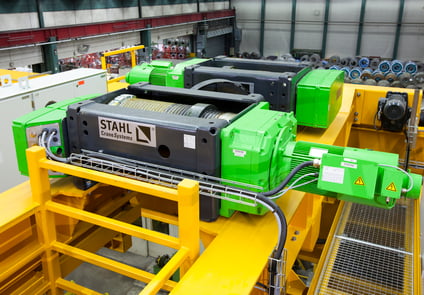 Ensuring the safe and proper use of your hoist is important. The STAHL CraneSystems SMC 4 Multicontroller gives you access to various safety and control functions in a simple, easy-to-use interface. Versatile and flexible, the SMC 4 gives you the ability to scale the device to your unique application needs with numerous functional and safety features as well as improved communication interfaces. By combining the features of the SMC 4 with the power of Magnetek’s industry-leading IMPULSE®·VG+ frequency inverter, including Advanced Ultra-Lift at partial load, you get safety and performance you can count on. All safety-related functions and features have been updated and improved in accordance with applicable standards for lifting equipment to EN 14492-2, EN 15011 and EN 13001-2. The SMC 4 also provides integrated reliable speed monitoring in accordance with EN standards, therefore Performance Level PL c to DIN EN ISO 13849-1 is attained. The TÜV-certified microprocessor and operating system come in Performance Level PL d. This eliminates the need for an additional safety Programmable Logic Controller (PLC) for the Intercept Rope Drum Brake.