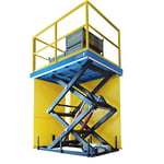 Uma mesa elevatória é adequada para elevar e baixar cargas pesadas e consiste numa plataforma para acomodar as cargas a elevar, uma ou mais tesouras colocadas abaixo da plataforma e uma estrutura de base. Embora um dos lados da tesoura seja rotativo, o outro lado pode mover-se horizontalmente dentro da plataforma e da estrutura base, elevando ou baixando a plataforma.